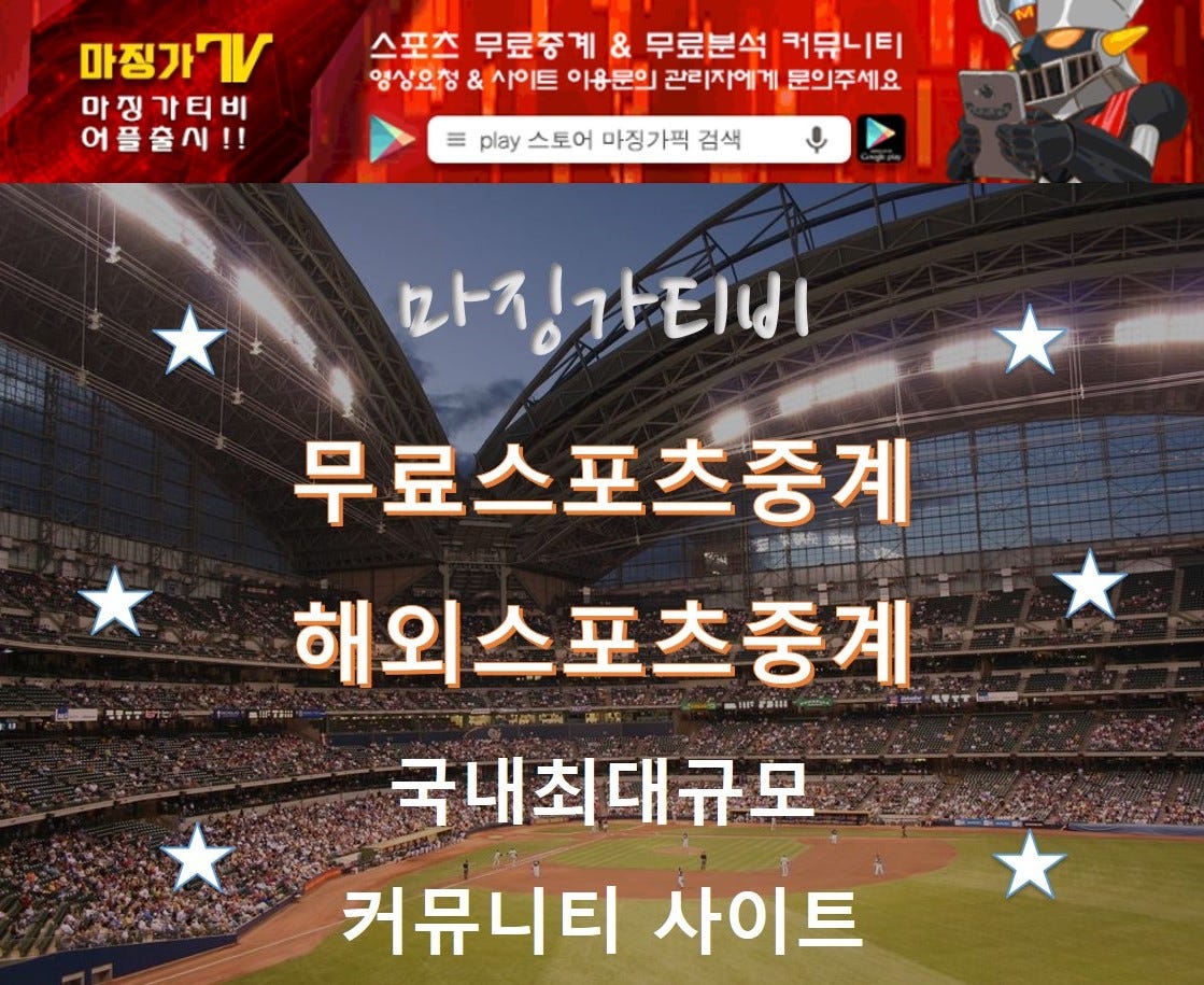 마징가티비는 메이저스포츠방송국으로써 100% 실시간 무료 tv 방송을 제공해주는 것외에도 많은 정보를 가지고있는 곳입니다.해외축구중계, nba중계, 해외스포츠중계, 국내농구중계, 해외야구중계, mlb중계, 국내야구중계, kbo, 배구중계, 해외배구중계, kovo중계, ufc중계, 테니스, 정보공유
